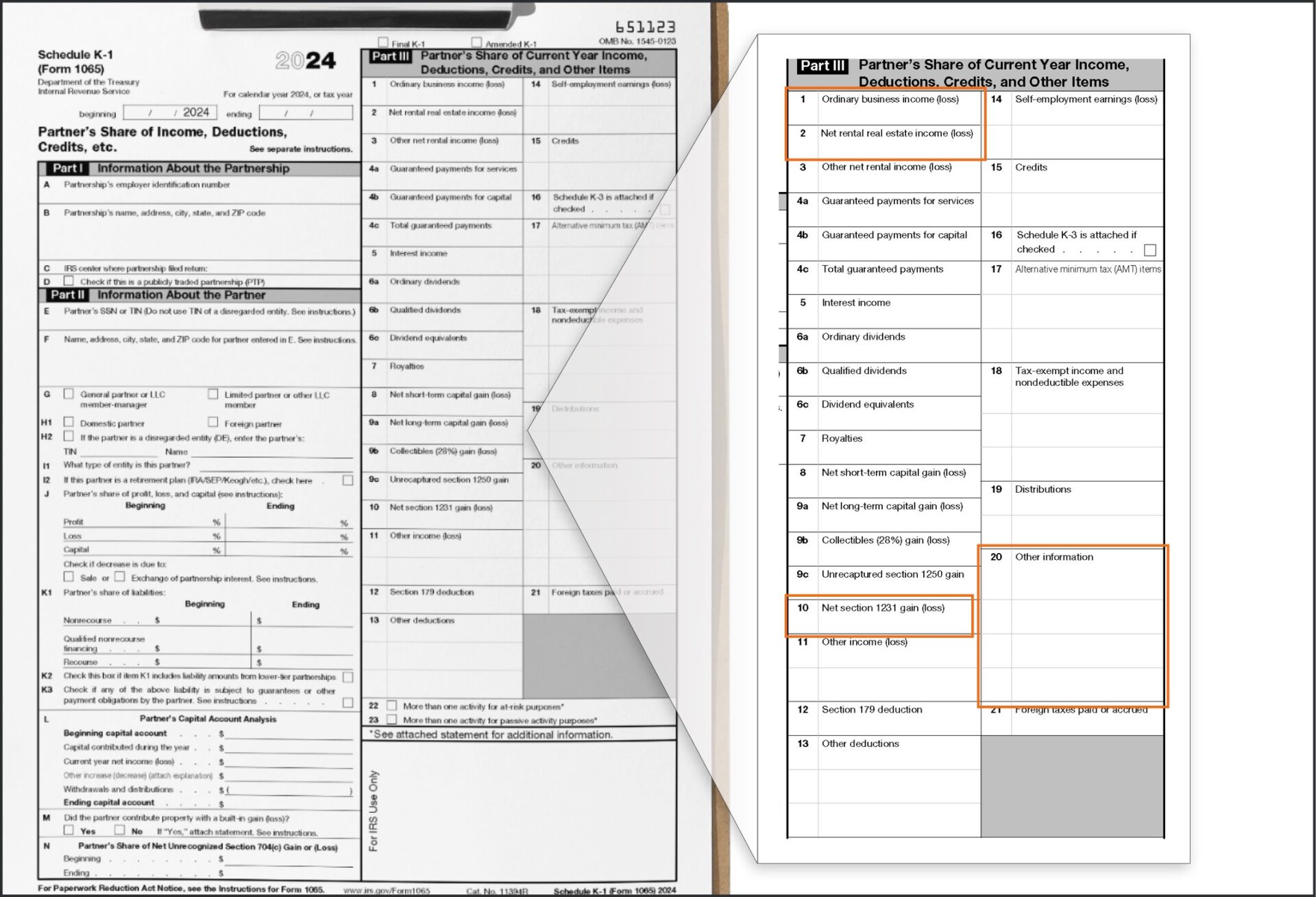 For more information about this scenario, including where to look on a K-1 please refer to the Frequently Asked Questions below, or reach out to our team of specialists by emailing [email protected].