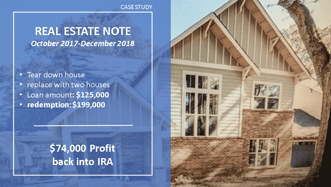 His IRA made a $74,000 interest, income profit, if you will, into the retirement plan. At closing, that money went back into the IRA.